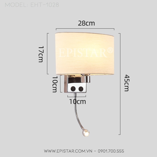THÔNG SỐ KỸ THUẬT ĐÈN TƯỜNG PHÒNG KHÁCH SẠN RESORT CAO CẤP EPISTAR EHT-1028